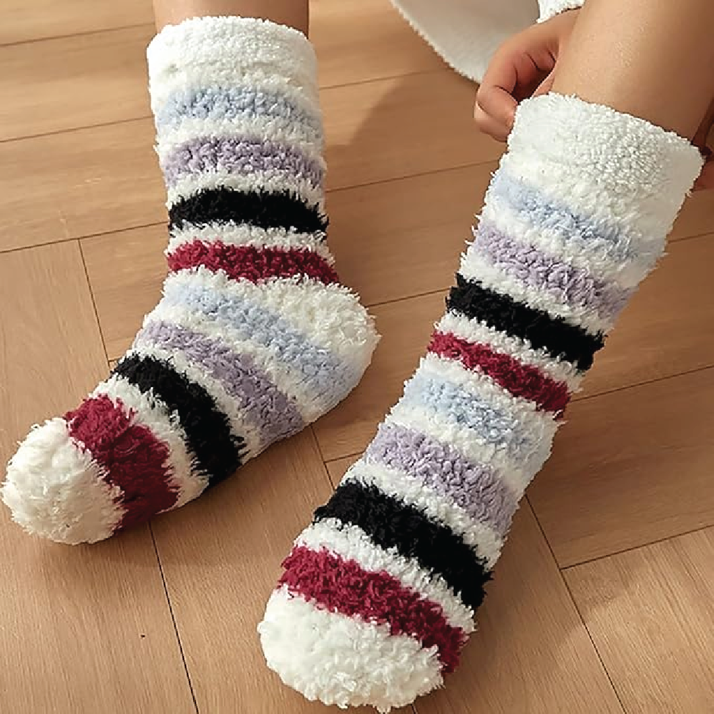 Medias calienticas rosadas de rayas para siempre estar calientitos.